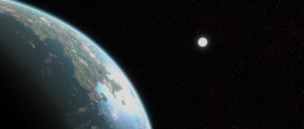 The planet is represented by 3 main spheres (planet, clouds and atmosphere).
